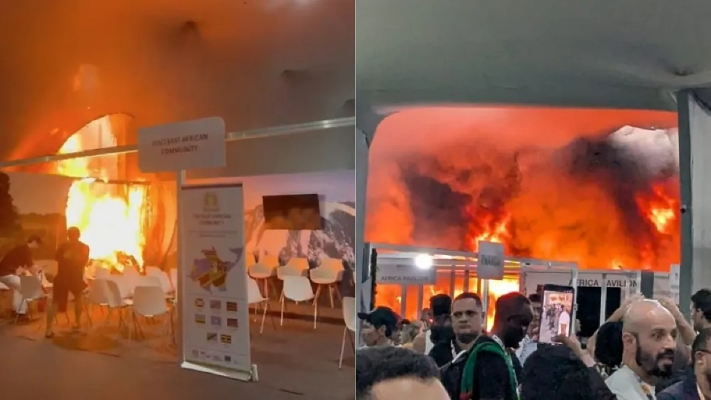 Um vídeo gravado de dentro do pavilhão da Comunidade da África Oriental (East African Community, em inglês) mostra o início do incêndio que atingiu o Pavilhão dos Países, uma das áreas da Zona Azul da COP30, na tarde desta quinta-feira (20). (veja no vídeo acima)