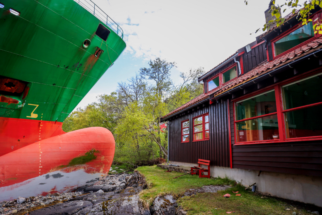 Homem acorda e se depara com enorme navio cargueiro no seu jardim na Noruega