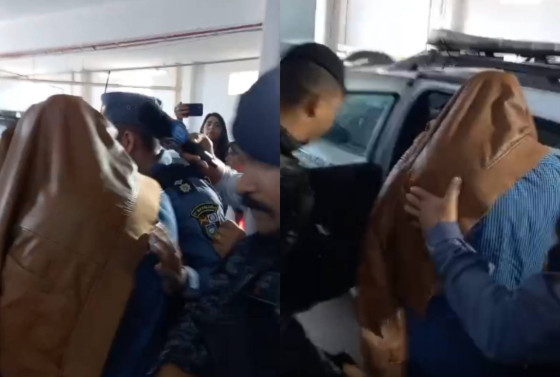 Raylton Mourão deixou delegacia com a cabeça coberta e escoltado pela PM