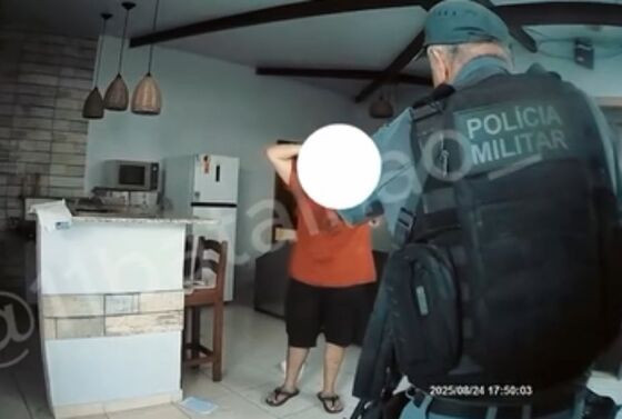 Imagens divulgadas pela Polícia Militar de Sinop mostram o momento da prisão do criminoso Lucas França, logo após ele matar a esposa, a fonoaudióloga Ana Paula Abreu, de 33 anos, dentro de casa, no último domingo (24).