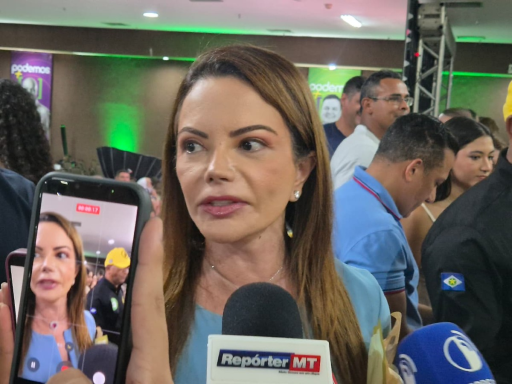 A primeira-dama Virginia Mendes disse que não deixará o União Brasil. Anteriormente, a esposa de Mauro Mendes afirmou que ainda não havia tomado uma decisão sobre o convite da presidente nacional do Podemos, Renata Abreu, para se filiar à sigla e deixar o partido atual, e que daria essa resposta nas próximas semanas. Depois, ao ser questionada novamente, ao lado do marido, ela disse: “Ele não deixa”, apontando para o governador.